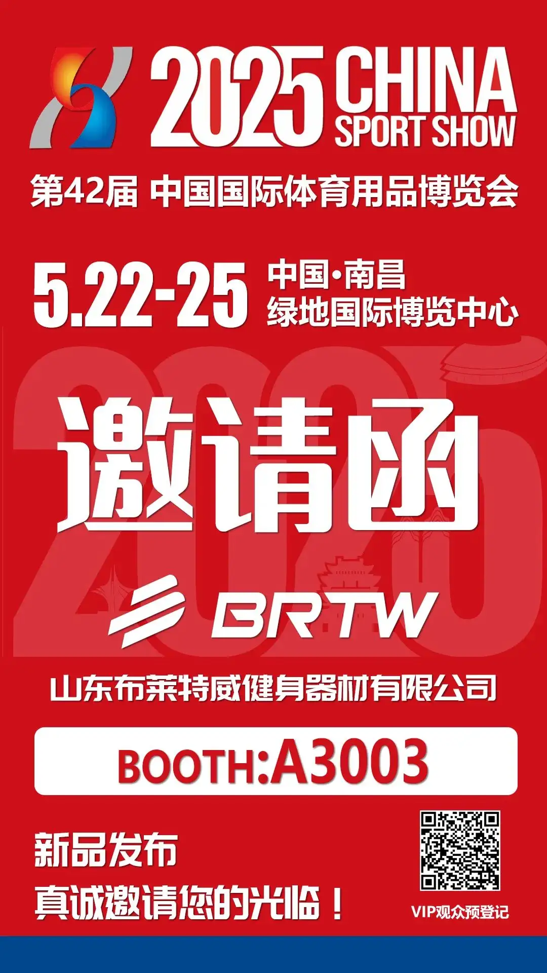 伟德国际健身器材有限公司,诚挚邀请您莅临第42届中国国际体育用品博览会(China SportShow 2025),与我们共探行业前沿趋势,见证科技与健康的完美融合!